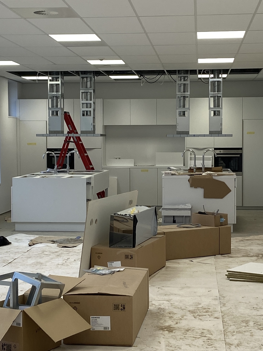 We kunnen echt af gaan tellen. De laatste zaken wordt nu aangepakt. Het is door alle ramen en de goede verlichting een fijn licht gebouw. De lokalen zijn fris, de kookstudio prachtig, de gymzaal nodigt uit om lekker te gaan bewegen. Hieronder een aantal foto's om mee weer mee te kijken.